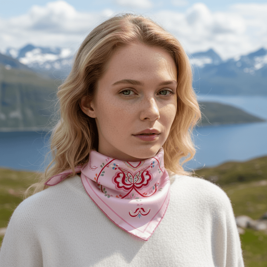 The design is inspired by the intricate floral patterns found in the Sunnmøre bunad, reimagined for timeless, modern wear.