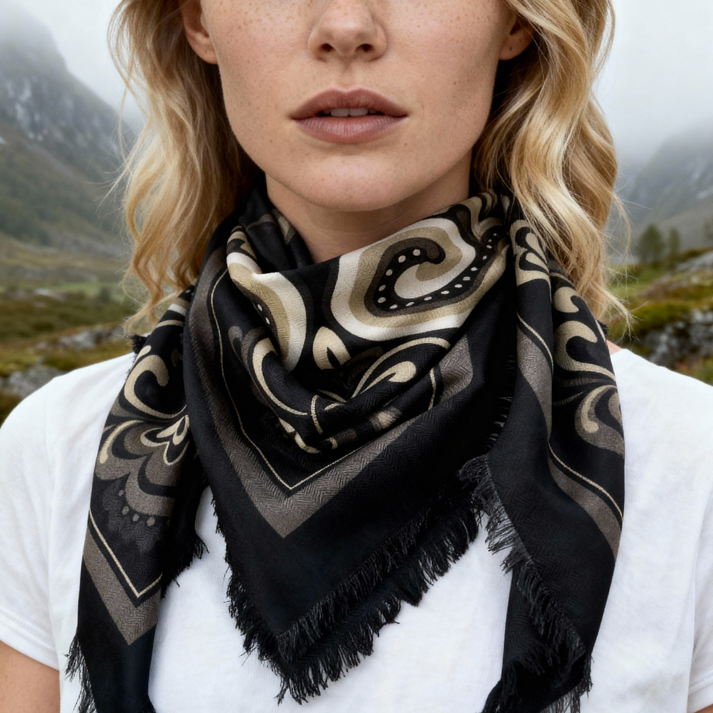 Printed on both sides for a flawless look from every angle, and finished with hand-rolled, hand-sewn edges—an artisanal detail that adds elegance to every fold.